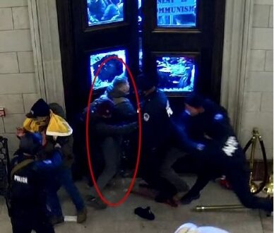 According to court documents and security camera footage, the active-duty marine violently entered the Capitol on Jan. 6 after pushing through a line of police officers guarding the East Rotunda doors.